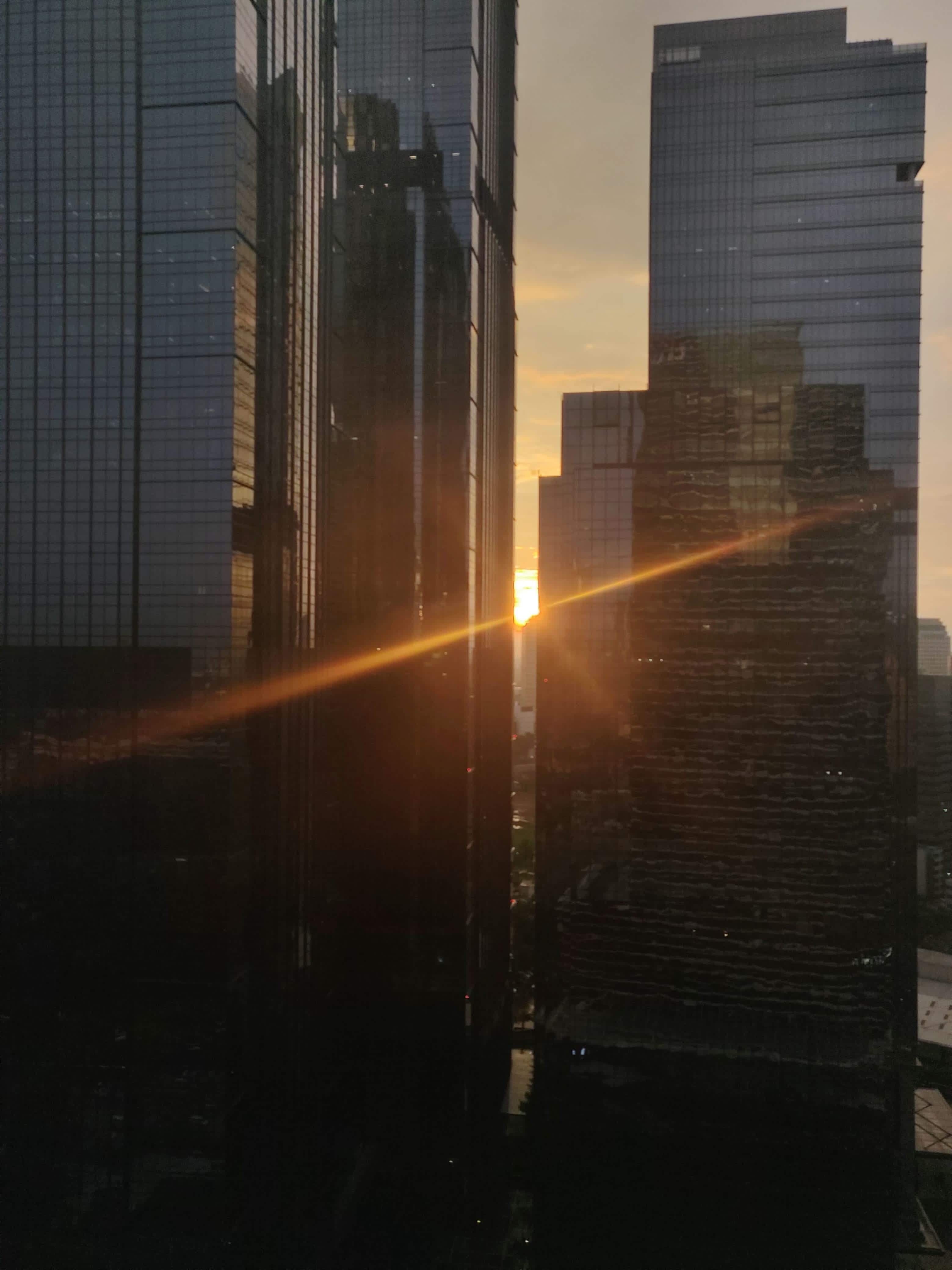 (My favourite view in Jakarta: the setting sun peeking from between the skyscrapers)